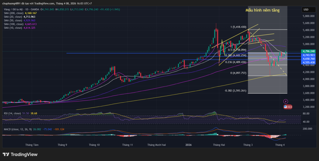 Sáng thứ Tư (08/04/2026), Spot Gold (XAU/USD) giao dịch đầy hưng phấn sau khi vượt qua ngưỡng hỗ trợ tâm lý quan trọng.
