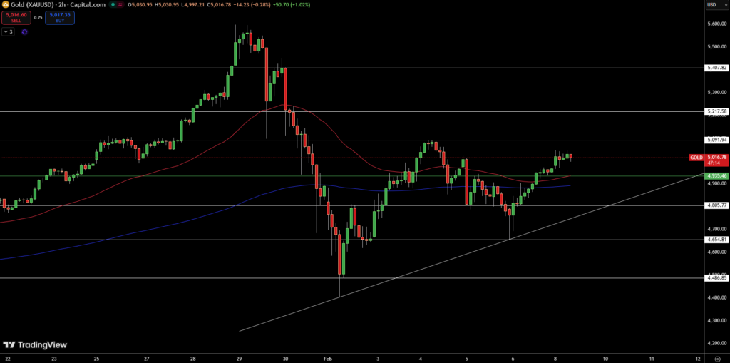 - Kháng cự gần nhất: 5.090 USD, nếu vượt qua có thể hướng tới 5.200 – 5.217 USD