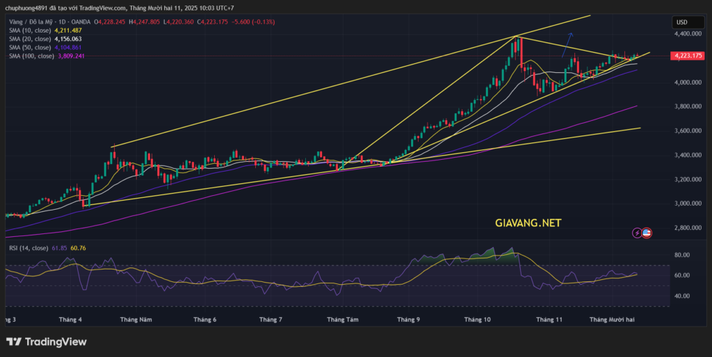 - Vượt $4.264 sẽ đưa vàng vào chu kỳ tăng mới với mục tiêu gần nhất $4.356 – $4.381.