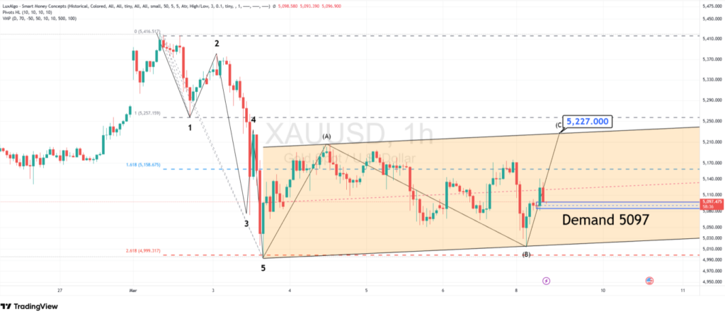 Nếu vàng không thể vượt kháng cự 5.227 USD, khả năng cao giá sẽ tiếp tục dao động trong kênh điều chỉnh hoặc quay lại kiểm tra vùng hỗ trợ.