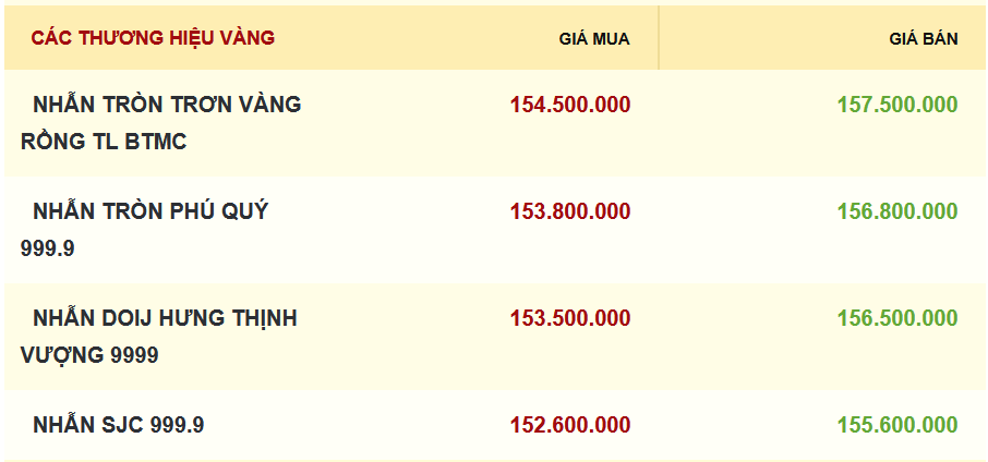 Vàng nhẫn ngày 9/1: Loạt thương hiệu…