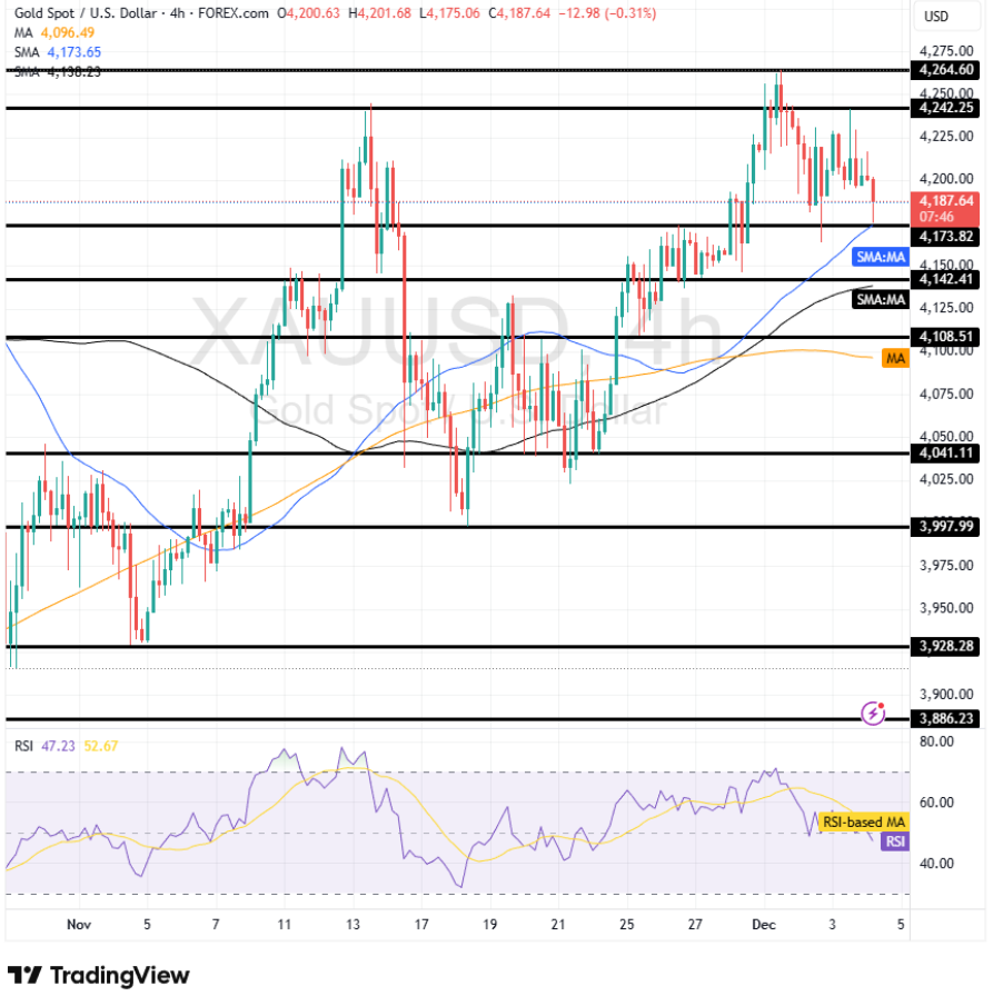 Về kỹ thuật, XAU/USD đang đối mặt với vùng kháng cự quan trọng tại 4.242 USD, xa hơn là 4.264 USD. Ở chiều ngược lại, vùng hỗ trợ gần nhất nằm tại 4.173 USD, tiếp đến là 4.142 USD. Tổng thể xu hướng vẫn duy trì tích cực, với triển vọng giá vàng tiếp tục đi lên nếu dữ liệu Mỹ tiếp tục gây thất vọng.
