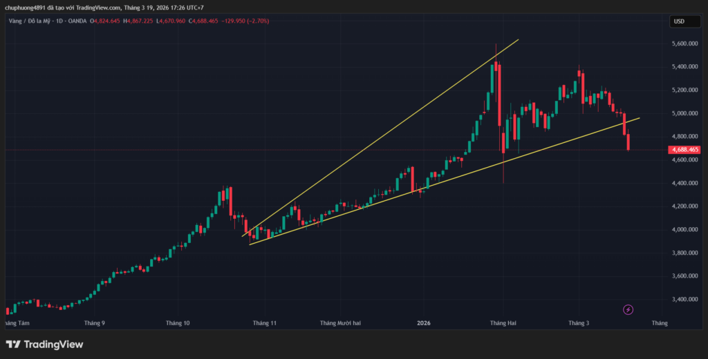 Giá vàng (XAU/USD) đã giảm mạnh xuống dưới mốc 4.700 USD/ounce sau khi Cục Dự trữ Liên bang Mỹ (Fed) quyết định giữ nguyên lãi suất. Động thái này diễn ra trong bối cảnh căng thẳng địa chính trị tại Trung Đông leo thang, đặc biệt là các cuộc tấn công vào hạ tầng năng lượng quan trọng.