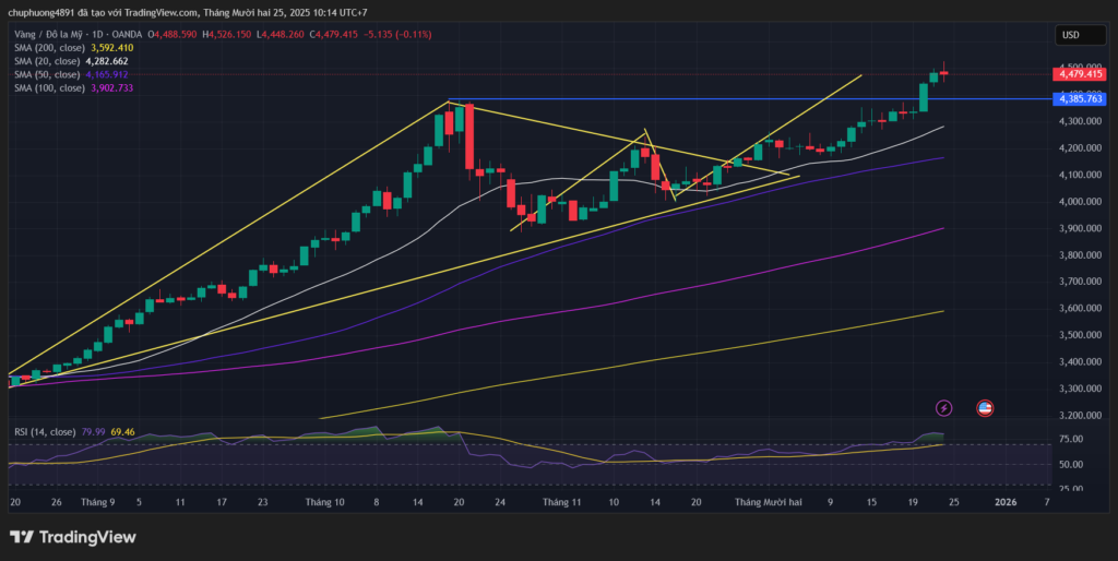 - 4.430 USD: đáy phiên trước – mốc cảnh báo điều chỉnh sâu
