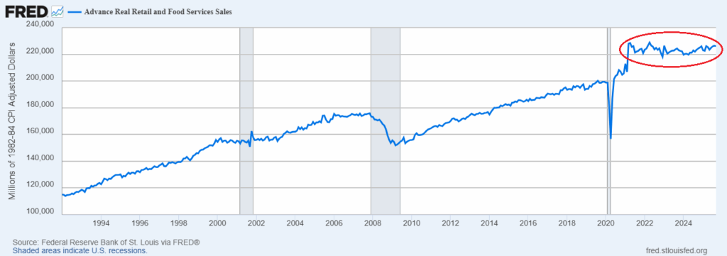 Nền kinh tế Mỹ tiếp tục phát đi tín hiệu giảm tốc. Tiêu dùng chững lại khi doanh số bán lẻ thực giảm nhẹ, và không cải thiện đáng kể kể từ đầu 2021. Môi trường chi tiêu yếu làm giảm áp lực lạm phát, tạo cơ sở cho Fed nới lỏng.