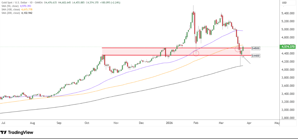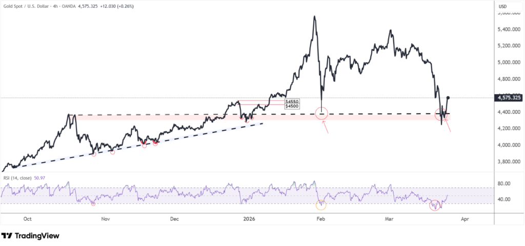 - Vùng 4.400 – 4.500 USD đang đóng vai trò kháng cự gần
