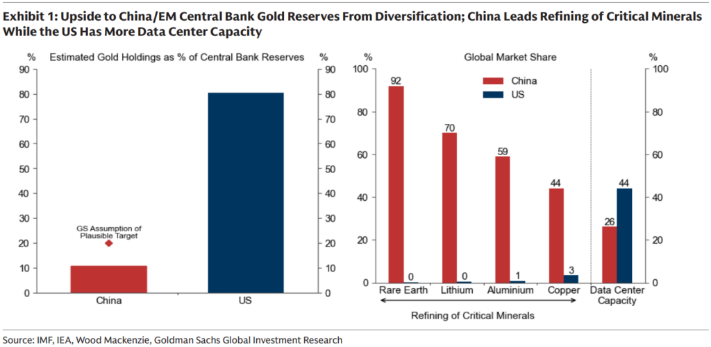 - Cạnh tranh địa chính trị và công nghệ Mỹ – Trung, đặc biệt trong lĩnh vực AI, khiến hàng hóa chiến lược như vàng trở thành công cụ phòng vệ rủi ro.