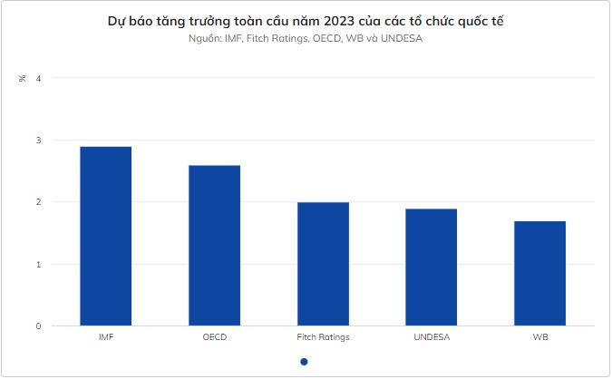 Tuy nhiên, Ngân hàng Thế giới (WB) và Liên hợp quốc (UNDESA) đưa ra dự báo bi quan hơn về tăng trưởng kinh tế toàn cầu năm 2023 trong các báo cáo đầu năm 2023.