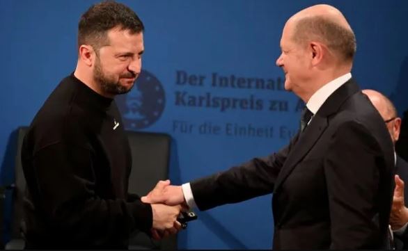 Tổng thống Ukraine Volodymyr Zelensky và Thủ tướng Đức Olaf Scholz.