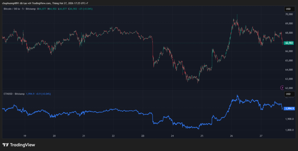 Thị trường tiền kĩ thuật số không giữ được xung lực hồi phục. BTC/USD quay đầu giảm về 67.000. ETH/USD mất ngưỡng 2000.