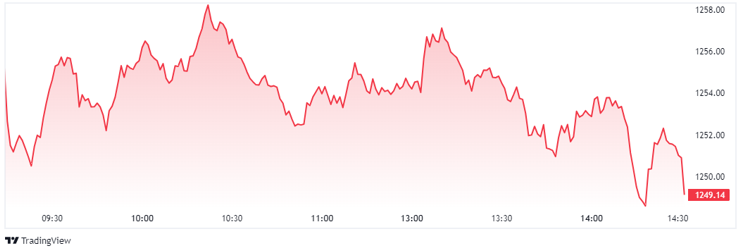 Sau nhịp tăng mở gap đầu phiên, F1 dần suy yếu và đánh mất toàn bộ thành quả tăng điểm về cuối phiên. Áp lực chốt lời một lần nữa gia tăng quanh vùng đỉnh cũ 1.260 (+-5) đã khiến cho đà tăng điểm của chỉ số không duy trì được đến cuối phiên.