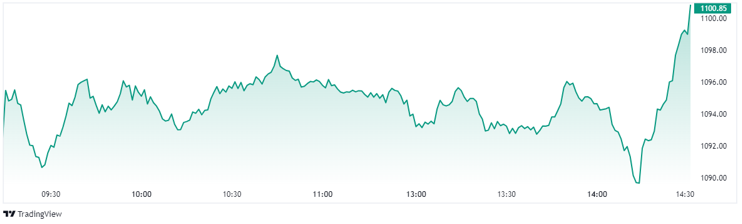 Vùng 1.100 vẫn đang là kháng cự gần nhất của chỉ số VN30. Do đó, nhà đầu tư không mở vị thế và quan sát thêm diễn biến thị trường, vùng hỗ trợ gần nhất là quanh MA20 khung đồ thị ngày, tức 1.070 – 1080.
