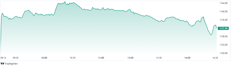 F1 trải qua một nhịp tăng điểm với diễn biến rung lắc giằng co trong phiên. Lực cầu suy yếu kết hợp với lực cung bán ra tăng mạnh quanh ngưỡng cản gần 1.150 (+-5) đã khiến cho đà tăng tích cực của chỉ số không duy trì được đến cuối phiên.