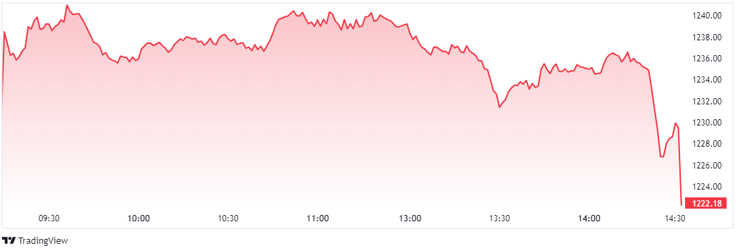 VN30F2308 giảm 1,15%, còn 1.220 điểm; VN30F2309 giảm 0,45%, còn 1.224,5 điểm; hợp đồng VN30F2312 giảm 0,74%, còn 1.220,8 điểm; hợp đồng VN30F2403 tăng 0,15% và đạt 1.215,6 điểm. Chỉ số cơ sở VN30-Index kết phiên ở mức 1.222,18 điểm.