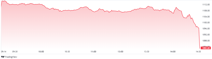 Ở góc nhìn kỹ thuật, VN30 một lần nữa hình thành mẫu hình nến Bearish Engulfing trên khung đồ thị ngày xóa bỏ hoàn toàn nỗ lực phục hồi của các phiên trước. Xét về khung đồ thị giờ, chỉ báo RSI đã hướng xuống tiêu cực và giảm dưới khu vực đáy cũ cho thấy rủi ro đã gia tăng. Đồng thời trên khung đồ thị giờ nến đỏ đã đóng dưới vùng hỗ trợ 1.085 điểm đã xác nhận tín hiệu đảo chiều trong ngắn hạn. Do đó, VCBS khuyến nghị nhà đầu tư mở vị thế Short tại vùng 1.080-1.085 điểm với mục tiêu 1.065 điểm trong phiên tiếp theo.