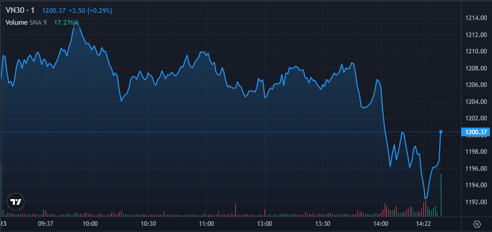 VN30F2405 giảm 0,39%, còn 1.200,6 điểm; VN30F2406 giảm 0,36%, còn 1.203,1 điểm; hợp đồng VN30F2409 giảm 0,67%, còn 1.202,1 điểm; hợp đồng VN30F2412 giảm 0,41%, còn 1.205,2 điểm. Chỉ số cơ sở VN30-Index kết phiên ở mức 1.200,37 điểm.