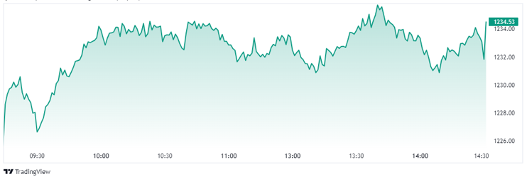 Xu hướng ngắn hạn duy trì ở mức tăng với trailing stop loss tại 1.190 điểm. Nhà đầu tư xem xét chiến lược giao dịch trong biên độ với vị thế Bán (Short) lướt ngắn tại vùng cản tiềm năng 1.238 điểm, dừng lỗ 1.242 điểm. Vị thế Mua (Long) mở ra tại vùng 1.223 điểm, dừng lỗ ở 1.219 điểm.