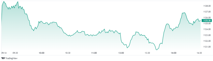 VN-Index mở cửa bật tăng, tuy nhiên áp lực bán tại ngưỡng kháng cự 1.130 khiến chỉ số lùi về 1.120 trước khi hồi phục vào cuối phiên và đóng cửa tại mốc 1.125,5 điểm. Độ rộng thị trường nghiêng về phía tiêu cực với 10/18 ngành giảm điểm. Về giao dịch của khối ngoại, họ tiếp tục bán ròng trên sàn HOSE và mua ròng trên sàn HNX.