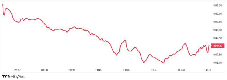 Lực cầu bắt đáy gia tăng quanh ngưỡng hỗ trợ gần 1.030 (+/-5) điểm đã giúp cho VN-Index tránh được một nhịp giảm sâu trong phiên. Mặc dù vậy, với xu hướng giảm điểm trong ngắn hạn vẫn đóng vai trò chủ đạo, rủi ro tiếp tục mở rộng nhịp điều chỉnh trong các phiên tiếp theo vẫn đang có phần lấn át nếu chỉ số đánh mất ngưỡng hỗ trợ gần đã đề cập.