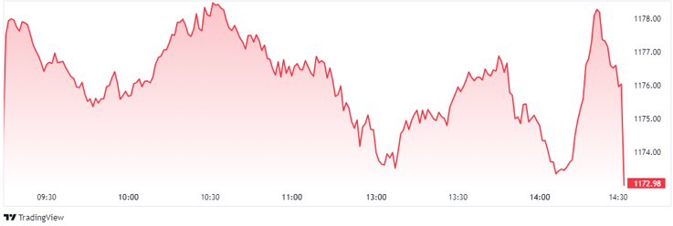 VN-Index hôm nay giằng co quanh ngưỡng 1.175 và kết phiên tại 1.172,98 điểm, giảm nhẹ so với phiên liền trước. Độ rộng thị trường nghiêng về phía tiêu cực với 9/19 ngành tăng điểm, trong đó ngành y tế dẫn đầu đà tăng, ngoài ra ngành bảo hiểm cũng có một phiên giao dịch tích cực. Về giao dịch của khối ngoại, hôm qua khối này mua ròng trên cả hai sàn HOSE và HNX.