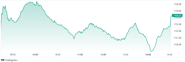 Sau một ngày giằng co, VN-Index đóng cửa tại mốc 1.134,33 điểm. Độ rộng thị trường nghiêng về phía tích cực với 10/19 ngành tăng điểm, trong đó ngành tài nguyên cơ bản trở lại dẫn đầu đà tăng, theo sau là ngành y tế.