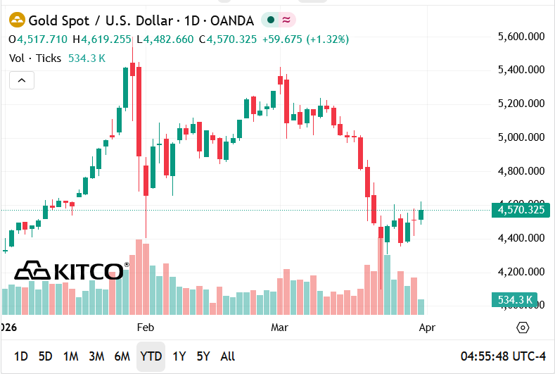 Đến cuối quý I, giá vàng dao động quanh 4.500 – 4.600 USD/ounce, thấp hơn đáng kể so với đỉnh nhưng vẫn cao hơn so với cuối năm 2025. Điều này cho thấy xu hướng tăng dài hạn chưa bị phá vỡ hoàn toàn, dù biến động ngắn hạn là rất lớn.