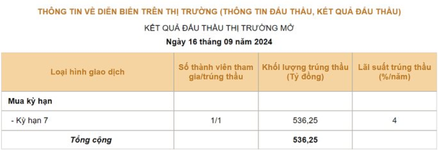 (GVNET) – Trong phiên 16/9, Ngân hàng Nhà nước (NHNN) có động thái hạ lãi suất cho vay cầm cố giấy tờ có giá (OMO) từ 4,25%/năm duy trì từ đầu tháng 8, xuống còn 4%/năm.