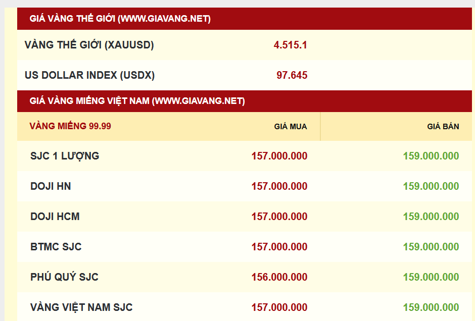 Khi giá vàng thế giới chính thức vượt mốc 4.500 USD/ounce, thị trường trong nước đang đứng trước khả năng thiết lập mặt bằng giá mới, với giá vàng miếng SJC được dự báo có thể vượt 160 triệu đồng/lượng trong thời gian tới. Đà tăng mạnh của vàng quốc tế đến từ nhu cầu trú ẩn an toàn gia tăng, căng thẳng địa chính trị kéo dài cùng kỳ vọng Cục Dự trữ Liên bang Mỹ (Fed) tiếp tục nới lỏng chính sách tiền tệ, khiến đồng USD suy yếu. Trong bối cảnh nguồn cung vàng trong nước vẫn hạn chế, chênh lệch giá cao có thể được duy trì, qua đó tạo thêm lực đẩy cho giá vàng nội địa bứt phá lên những kỷ lục mới.