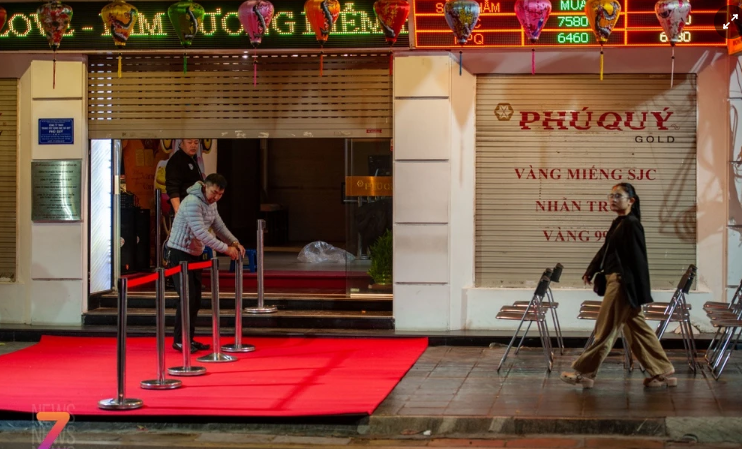 Thời điểm 5h sáng tại một cửa hàng vàng trên phố Trần Nhân Tông, hàng dài ghế được xếp sẵn nhưng chưa có khách đến đợi, khác hẳn với cảnh đông đúc như những năm trước đó.