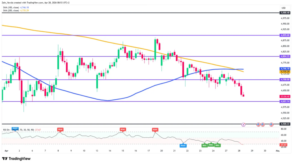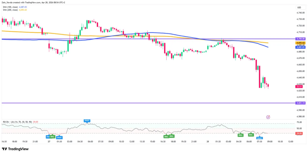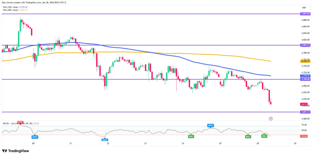 Nếu vàng không thể chiếm lại vùng $4.640 – $4.650 trong đợt hồi phục kỹ thuật, phe bán sẽ tiếp tục gia tăng áp lực.