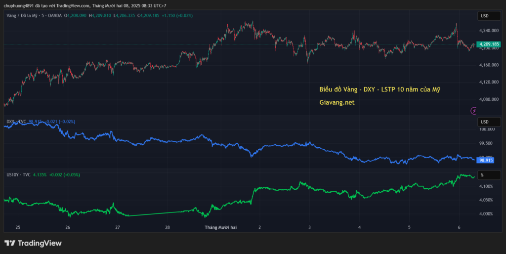 (GVNET) Giá vàng mở cửa tuần mới với đà tăng nhẹ, dao động quanh 4.205 USD/oz trong phiên giao dịch sáng thứ Hai tại châu Á. Tâm lý thị trường trở nên lạc quan hơn khi gần 90% nhà giao dịch tin rằng Fed sẽ cắt giảm lãi suất trong cuộc họp chính sách vào thứ Tư.