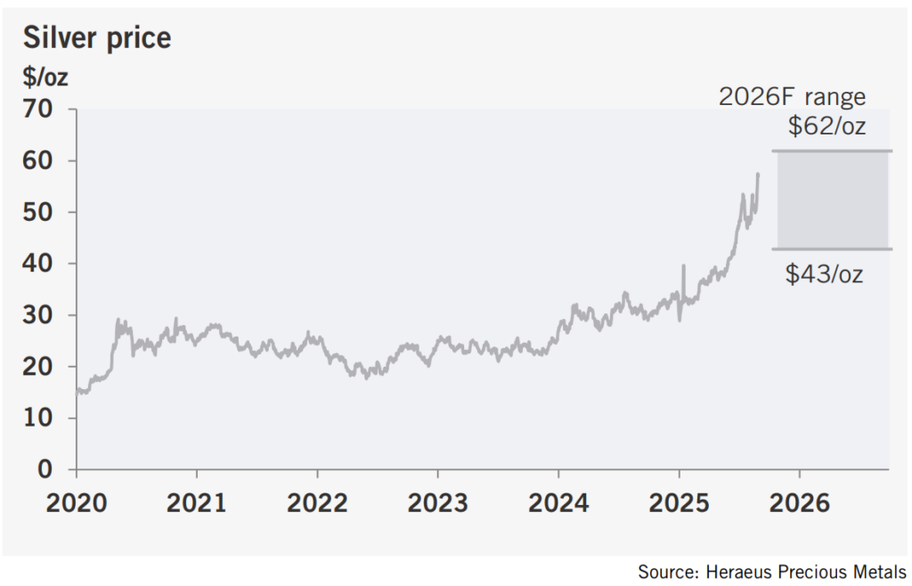 📌 Dự báo giá bạc 2026 của Heraeus: