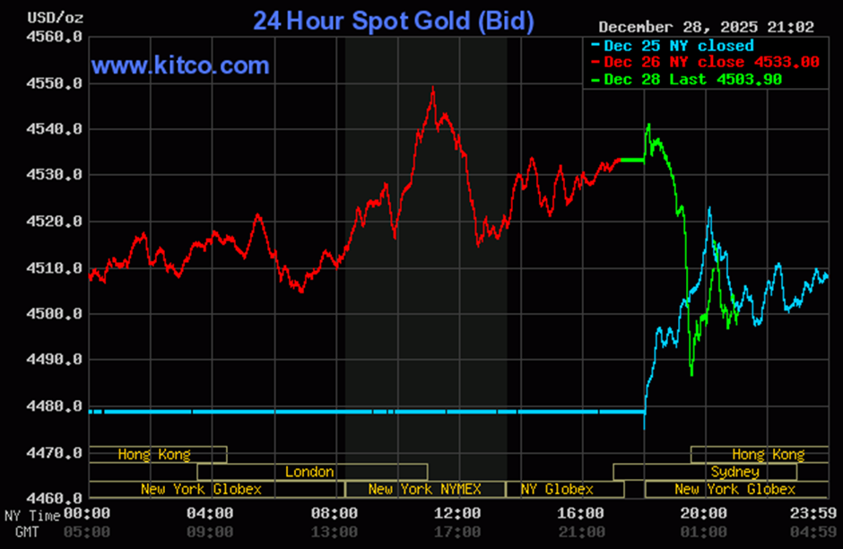Sốc: Giá vàng thế giới thủng mốc $4.500 sáng 29/12, áp lực chốt lời gia tăng