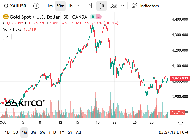 Sau khi giảm gần 11% chỉ trong 2 tuần, giá vàng thế giới tăng trở lại và giao dịch quanh ngưỡng 4.000 USD/ounce. Điều này được thúc đẩy bởi động thái cắt giảm lãi suất của Cục Dự trữ Liên bang Mỹ (Fed), dù tiến triển trong đàm phán thương mại Mỹ – Trung khiến đà tăng phần nào chững lại.