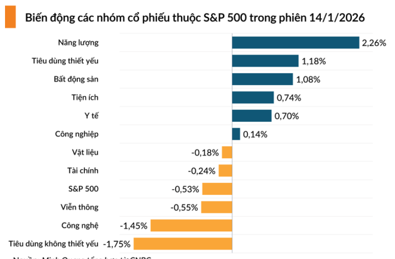 Đóng cửa phiên giao dịch thứ Tư ngày 14/1, chỉ số S&P 500 giảm 0,53%, chốt phiên tại 6.926,60 điểm.