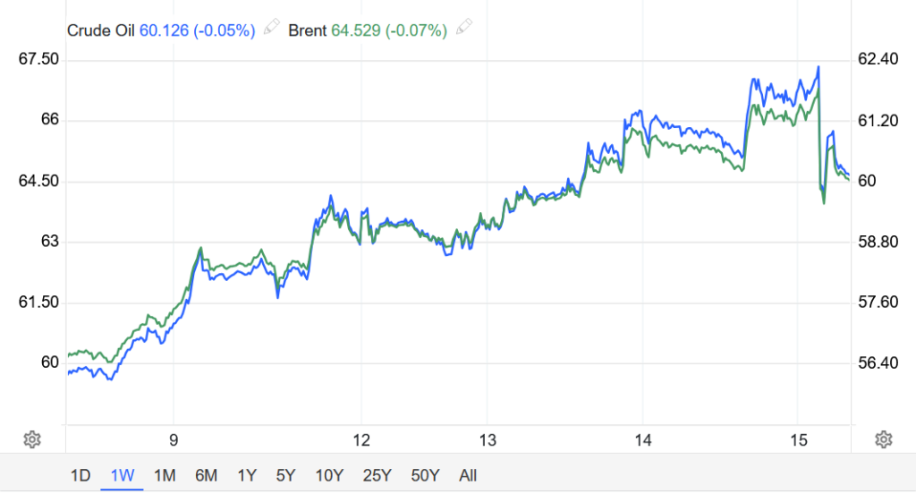 Hợp đồng dầu WTI tương lai giảm 95 xu, tương đương 1,55%, xuống còn 60,20 USD/thùng vào lúc 16h17 theo giờ miền Đông Mỹ.