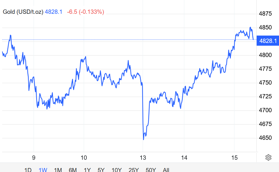 Cùng chiều, hợp đồng vàng tương lai tăng 1% lên $4815,40/oz.
