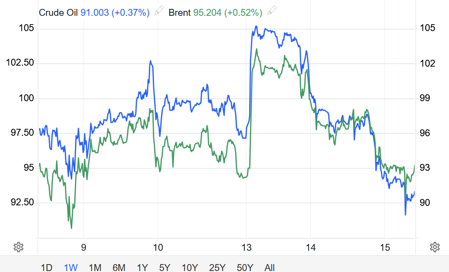 Khép phiên ngày 14/04, giá dầu thô WTI của Mỹ giao tháng 5 giảm gần 8%, chốt ở mức 91,28 USD/thùng.