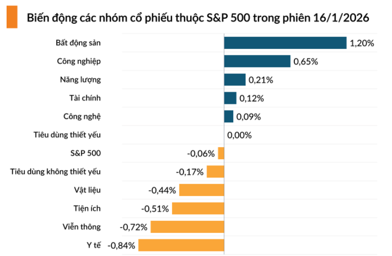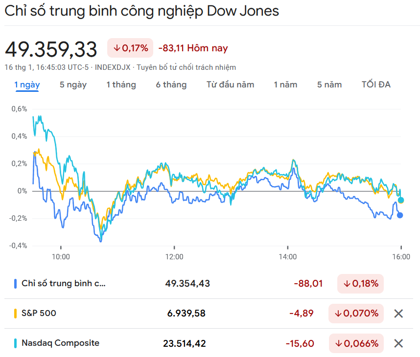 Trong khi đó, Dow Jones Industrial Average giảm 83,11 điểm, tương đương 0,17%, xuống còn 49.359,33 điểm.