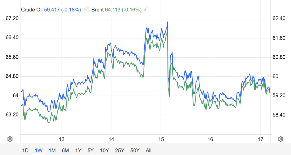 Theo tuần, dầu Brent tăng khoảng 2% trong tuần, còn WTI tăng khoảng 1,4%.
