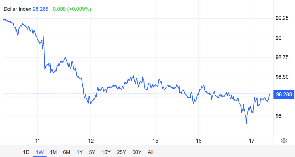 Chỉ số DXY giảm xuống dưới mốc 98,1 vào thứ Ba, chạm mức thấp nhất trong hơn hai tháng, khi các nhà giao dịch tiếp tục đặt cược rằng Cục Dự trữ Liên bang Mỹ (Fed) vẫn còn dư địa để cắt giảm lãi suất điều hành thêm một lần nữa trong năm tới. Các dữ liệu kinh tế bị công bố chậm không tạo ra nhiều thay đổi đối với kỳ vọng của giới đầu tư về khả năng Fed có thể thực hiện tối đa hai đợt cắt giảm lãi suất bổ sung trong năm 2026.
