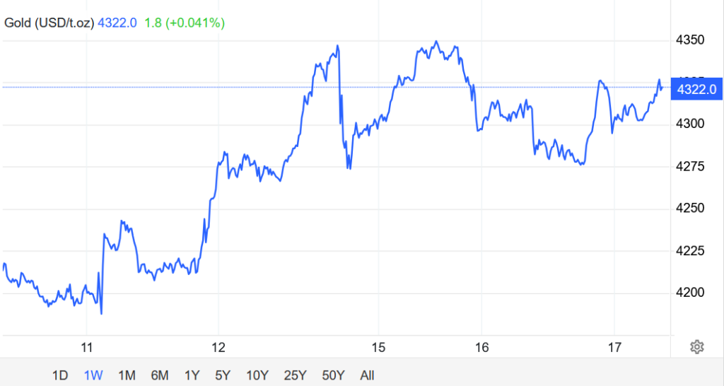 Trong khi đó, hợp đồng vàng kỳ hạn tại Mỹ chốt phiên giảm nhẹ 0,1%, xuống còn $4332,3/oz.