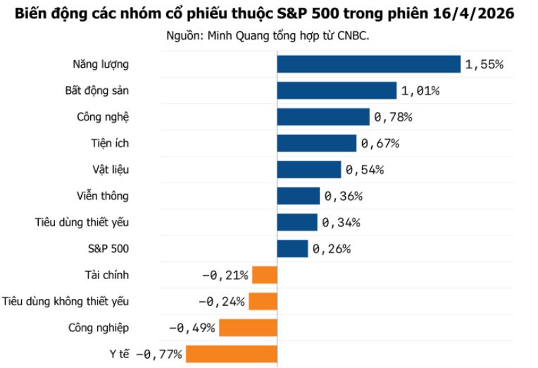 Đóng cửa phiên giao dịch thứ Năm ngày 16/4, chỉ số S&P 500 tăng 0,26% lên 7.041,28 điểm.