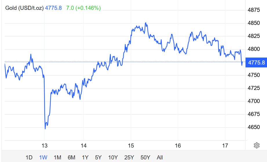 Giá vàng giao ngay tăng 0,6% lên $4816,14/oz vào lúc 9h00 sáng ET (13:00 GMT), sau khi chạm mức cao nhất trong một tháng ở phiên trước đó.