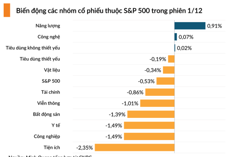 Phố Wall đỏ rực, cổ phiếu Năng lượng ngược dòng tăng giá