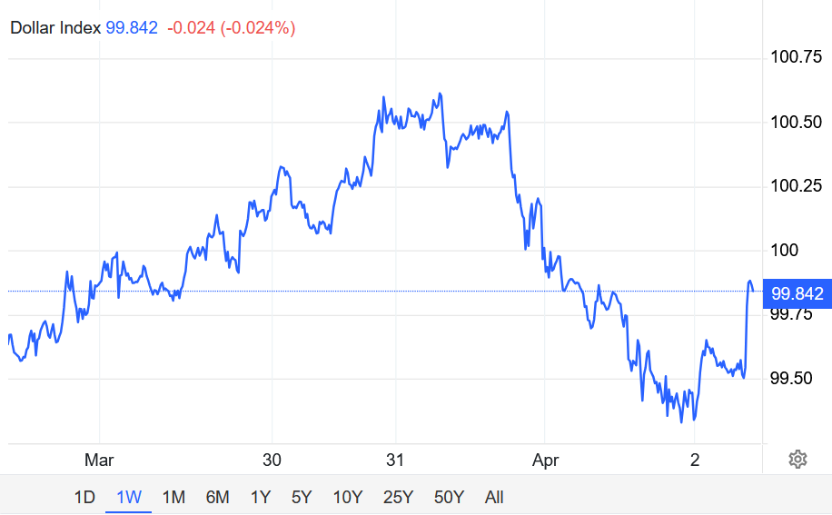 Chỉ số USD giảm xuống mức 99,5 vào thứ Tư, tiếp tục rời xa đỉnh 10 tháng là 100,5 đạt được vào thứ Hai, khi các dấu hiệu cho thấy Mỹ đang hướng tới việc khôi phục lưu thông tàu thuyền ở Trung Đông đã làm giảm nhu cầu tìm đến đồng bạc xanh như một tài sản trú ẩn an toàn.