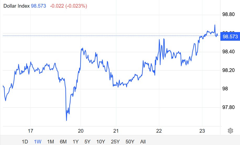 Chỉ số đô la Mỹ đứng ở mức 98,3 vào thứ Tư, chủ yếu đi ngang quanh mức trước khi xảy ra xung đột, khi sự bất ổn tại Trung Đông vẫn tiếp diễn dù có một số tín hiệu giảm căng thẳng trong ngắn hạn nhờ việc gia hạn lệnh ngừng bắn.