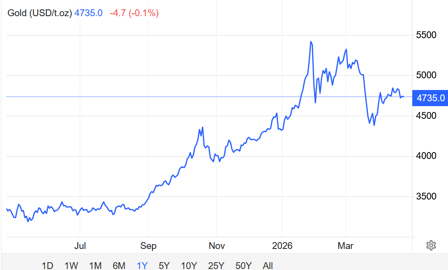 Giá vàng giao ngay tăng 0,5% lên $4.735,65/oz, sau khi có lúc tăng 1% trong phiên. Trước đó, giá đã ghi nhận phiên giảm mạnh nhất kể từ ngày 26/03.