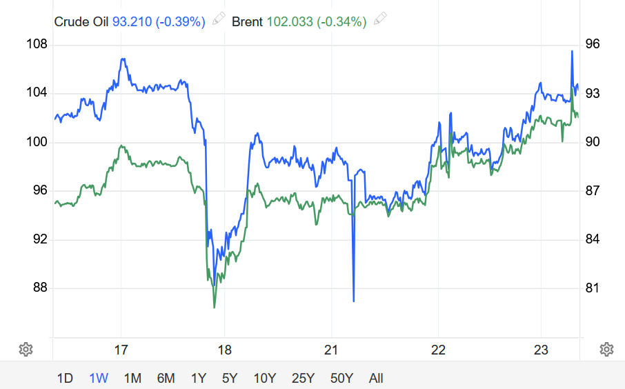 Dầu WTI của Mỹ cũng tăng hơn 3% lên 92,96 USD/thùng.