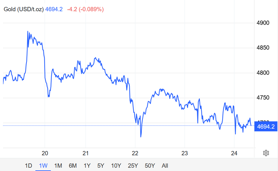 Giá vàng giao ngay giảm 0,6% xuống $4706,49/oz.